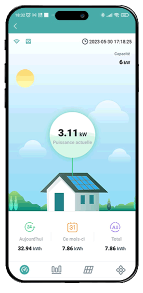 Vous pouvez suivre de près les performances de vos panneaux solaires. Vous avez le contrôle total de votre système solaire à portée de main, offrant une gestion pratique et efficace de votre production d’énergie solaire.